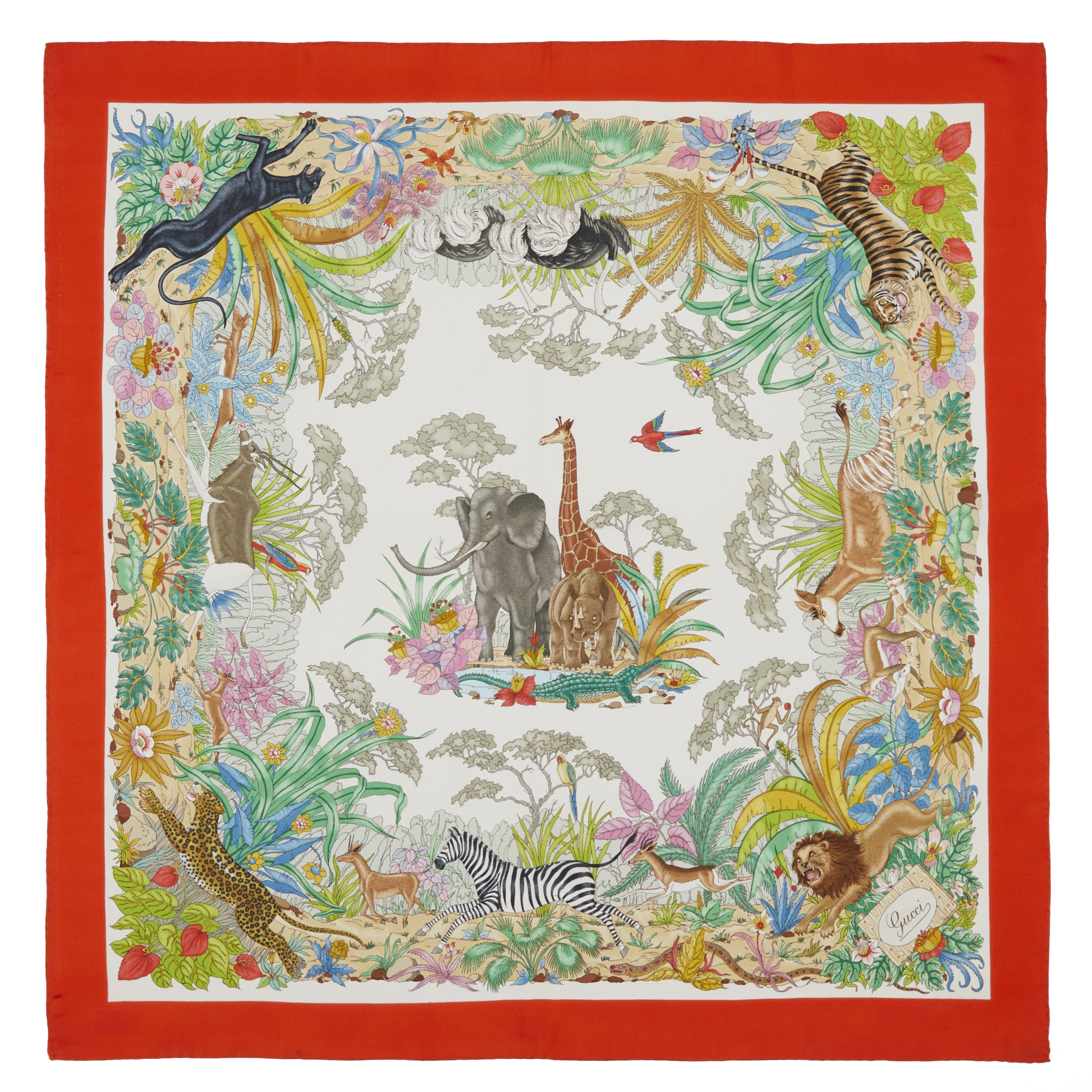 自1969年Vittorio Accornero推出“Safari”印花以来,动物图案早已融入古驰设计脉络,成为不可分割的重要组成部分。该印花以对野生动物(如狮子、飞鸟、蝴蝶等)栩栩如生的描绘而为人所知。从1970年代至1990年代,动物印花被广泛运用于领带、丝巾和成衣之中。