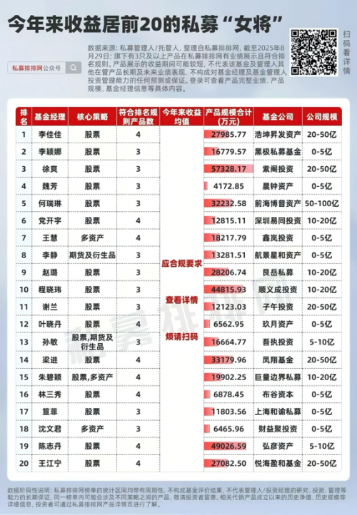 从私募“女将”今年来收益榜单来看,李佳佳旗下产品平均收益超60%,以绝对优势断层领先;而在近一年收益榜单中,她更是成为唯一实现收益翻倍的选手,超前领跑整个榜单,业绩表现堪称亮眼。