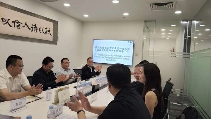 2025 年 11月12日,临沂市委组织部部长肖永涛率临沂市代表团及山东兰华集团股份有限公司董事长管照军先生一行莅临 FAC 新加坡诚信会计师事务所参访交流。随行的人员还有临沂市委组织部、 临沂市人民政府外事办公室及临沂市科学技术局的领导或分管负责人等。