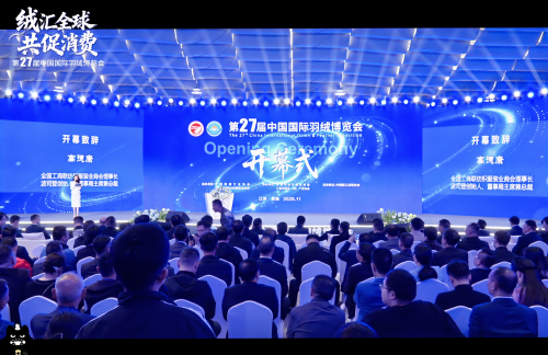 2025年11月4日,第27届中国国际羽绒博览会(以下简称“羽博会”)在江苏常熟盛大启幕。本届羽博会以“绒汇全球 共促消费”为主题,会期三天,展会面积10000平方米,展览内容覆盖羽绒原料、服装、家纺、设备、检测等全链条环节。据悉,本届羽博会汇聚鸭鸭羽绒服等国内外知名品牌与羽绒原料企业,此外还有常熟、萧山、六安、共青等产业集群组团亮相。