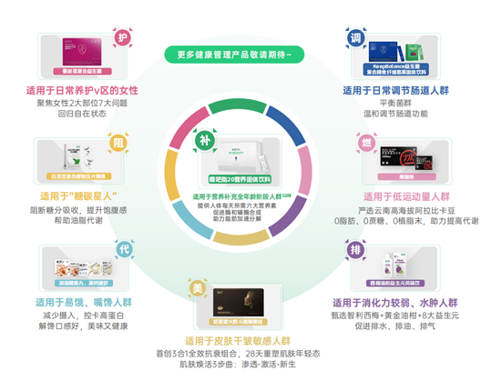 此次与Seagarden的战略合作,与瘦吧科技长期构建的科学健康管理体系深度协同,进一步强化了其“全生命周期健康管理”的产品布局。以“营养补充”为基石,瘦吧打造了覆盖“燃、排、调、阻、护、美、代”七大系列的产品矩阵,精准满足用户在体重管理、私护健康、肠道调节及抗衰美容等多个维度的需求。