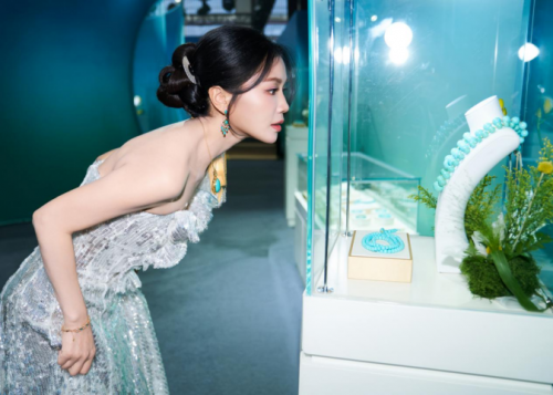 当晚的“BAZAAR Shine鎏光之夜”在竹山麻家渡镇国际珠宝交易中心璀璨启幕,将本次活动推向最高潮。华灯初上,嘉宾们沿着精心设计的绿松石主题红毯步入现场,在精心策划打造的绿松石精品主题展区驻足欣赏,流连忘返。