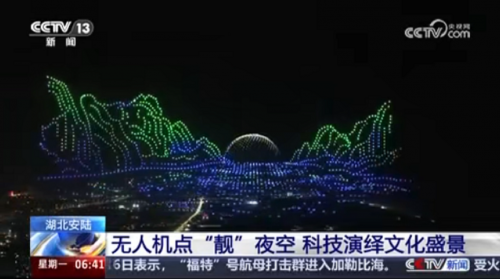 本次活动被央视连续2次报道,CCTV-1《晚间新闻》无人机扮靓天空,用科技诠释文化;CCTV-13《朝闻天下》无人机点“靓”夜空,科技演绎文化盛景。同时被湖北卫视、湖北经视、湖北日报、极目新闻、中国新闻网、新浪财经、孝感文旅等主流媒体报道,活动当晚长江云新闻直播间在线观看人数1760万+。