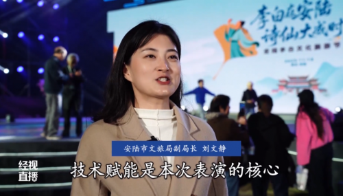 随着时空之门的开启,现代安陆的模样跃然夜空。宜居的引力之城、宜业的实力之城、宜乐的活力之城、宜游的魅力之城,共同谱写着属于这座现代都市的华彩篇章。现场惊叹声、欢呼声此起彼伏,观众纷纷举起手机,记录下这难忘的瞬间。游客刘小凤表示“我是专程赶来观看,感觉不虚此行,表演既展现了李白诗歌意境,又展示了安陆从千年文脉到现代产业的奋进历程,让我对这座城市有了全新了解。”