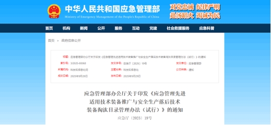 2025年,应急管理部办公厅发布了《关于征集2025年度应急管理先进适用技术装备推广与安全生产落后技术装备淘汰目录的通知》,旨在加快推广先进适用技术装备,淘汰严重危及生产安全的技术装备。