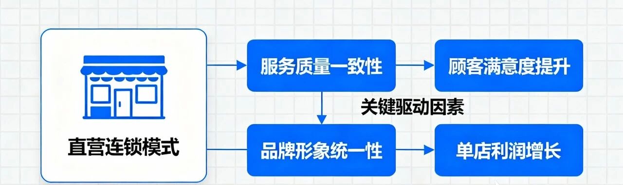 连锁战略选择,企业连锁化战略是影响连锁化绩效的关键驱动因素。研究发现,不同的连锁化战略选择会直接影响企业的资源配置、运营模式和市场竞争力(Bradach,1998) 。具体而言,直营连锁模式能够确保服务质量和品牌形象的一致性,从而提升顾客满意度和单店利润(Lafontaine & Shaw, 2005)。而特许经营和加盟连锁模式则能够通过授权加盟商使用品牌和运营模式,快速扩张并降低企业的资金压力(Combs et al.,2004)。