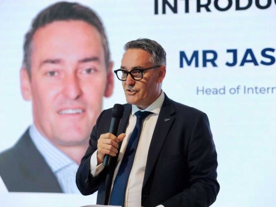 图片说明:新西兰银行(BNZ)国际业务负责人杰森·卢思韦特(Jason Lewthwaite)致辞