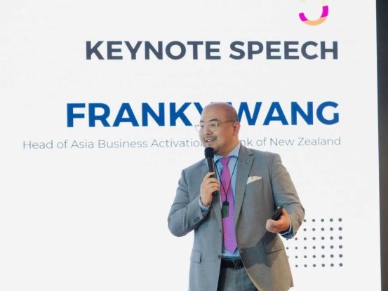 图片说明:新西兰银行(BNZ)亚洲商业主管王俊生(Franky Wang)主旨演讲