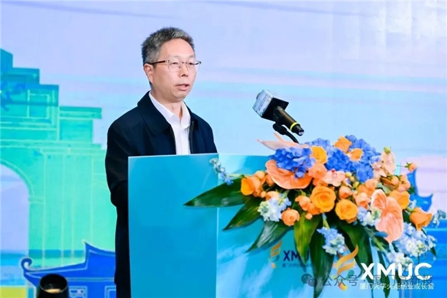 厦门火炬高新区管委会总工程师吴志伟登台致辞,大会正式开启。吴志伟表达了火炬高新区与创业者共同前行的信心与决心:“高新区始终与年轻人共同成长——从无到有、从零到一、从一到十。”他坦言,推动高校科研成果走向市场,是补齐区域创新短板的关键,并寄语创业者在产业变革中实现价值。“希望各位创业者把中国梦、创业梦、财富梦都践行起来,勇立潮头,在科技自强的道路上书写精彩篇章。”