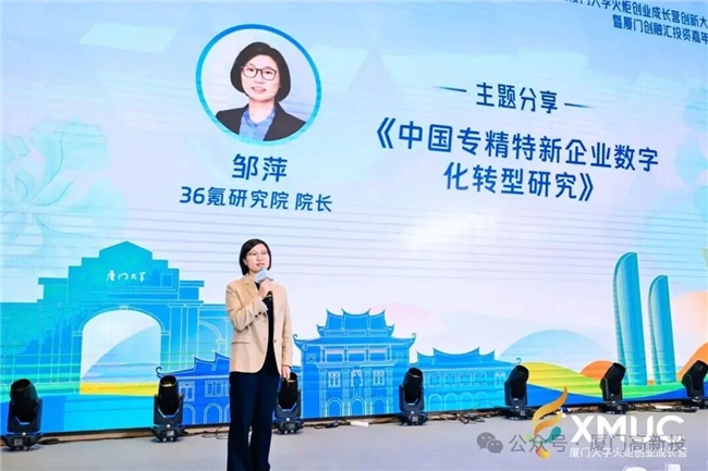主题分享环节,36氪研究院院长邹萍分享《中国专精特新企业数字化转型研究》。她指出,硬科技创业团队数字化不必追求一步到位,而应优先选择“小快轻准”的工具,在研发、生产或供应链等关键环节实现单点突破,进而实现全链路覆盖。她强调,成功的转型往往始于内部提效,逐步延伸至产业链协同;同时,选择匹配度高、交付及时的服务商也非常重要。