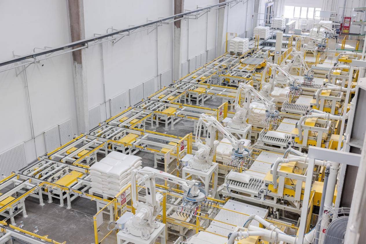 包装环节中,中粮面业潍坊工厂采用自动包装系统、包装质量监测系统,自动码垛系统等,机器人与 PLC、WMS系统协同运作模式,实现包装到入库全流程自动化作业。拥有自动上袋、精准灌装、自动缝口技术,结合高精度视觉检测,确保袋重统一、包装完美,效率为人工2.5倍。