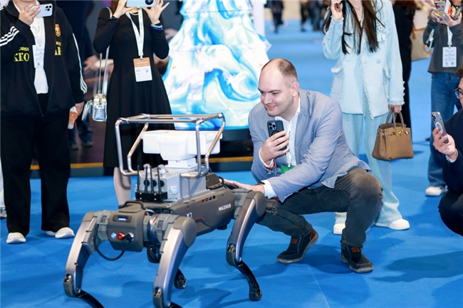 本次 AIE 展会,视源股份全栈自研的 MAXHUB X7 四足机器人首度登陆港澳,完成中国内地以外地区的公开首秀。据介绍,该产品搭载全自主研发的电驱动关节和自适应步态算法,可稳定穿越35°陡坡、台阶等复杂地形,IP66防护等级及-20℃至40℃宽温域能力,能适配电力巡检、应急救援等极端环境,实现“以机代人”的安全升级。
