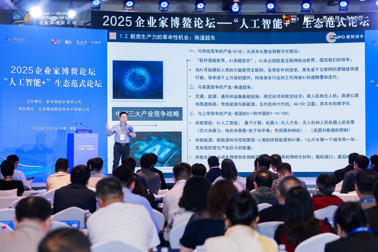 12月2日至5日,由新华网主办、赛迪网承办的的2025企业家博鳌论坛“人工智能+”范式论坛活动在海南博鳌举办。优势资本管理合伙人,国家发改委宏观经济杂志社“经济专家”郑翔洲出席论坛,并发表主旨演讲。