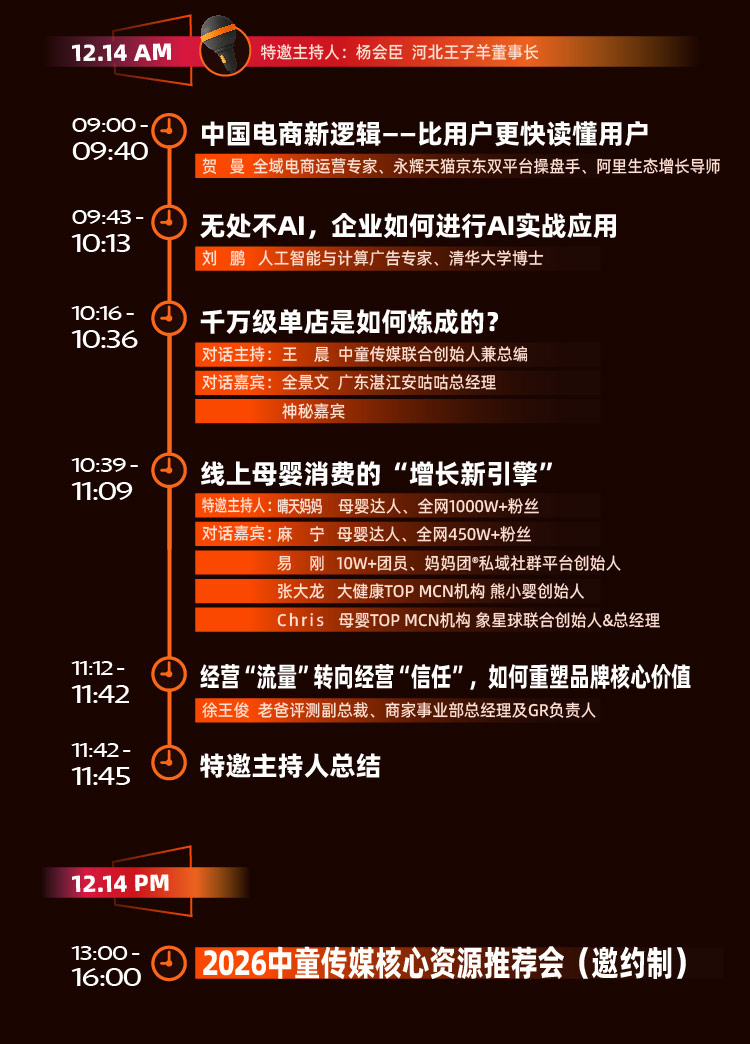 聚焦最前沿的增长工具与模式:由清华大学博士后带来“企业AI实战应用”指南;由千万粉丝母婴达人、TOP MCN机构创始人揭秘“从流量到信任”的内容与私域运营体系;并深度解析抖音母婴市场洞察与电商新逻辑,提供可立即上手的增长方案。