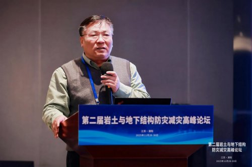 论坛报告环节由中国工程院院士刘汉龙、江汉大学教授肖衡林共同主持启动,特邀中国工程院院士王明洋作了专题报告。论坛汇聚了行业顶尖专家学者,围绕岩土与地下结构防灾减灾领域的前沿问题、技术创新与实践经验展开深入交流。