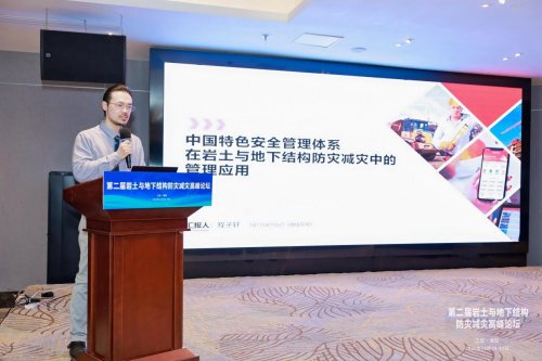 本次论坛设置了多个学术专题分会场,青铜建服联合创始人程子轩作为“中国特色科技安全管理体系”(简称CST体系)课题组代表,在分论坛做了题为《中国特色安全管理体系在岩土与地下结构防灾减灾中的管理应用研究》的学术报告。