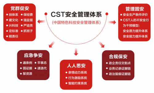 CST是CHINA-SPECIFIC S&T SAFETY MANAGEMENT SYSTEM的英文缩写,中文即中国特色科技安全管理体系,由南京青铜建服科技有限公司、重庆大学溧阳智慧城市研究院、新加坡国立大学、南京工业大学、中城建业等单位共同提出,以“党群促安、管理固安、人人思安、合规保安、应急争安”五大模块为核心的闭环管理模式,旨在探索一条兼顾中国国情和符合AI科技趋势的可持续发展新路径为中国式安全管理贡献力量。