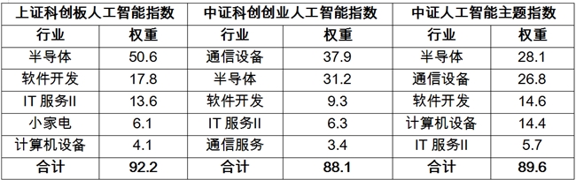 表1:三只人工智能相关指数前五大行业分布对比(申万二级)