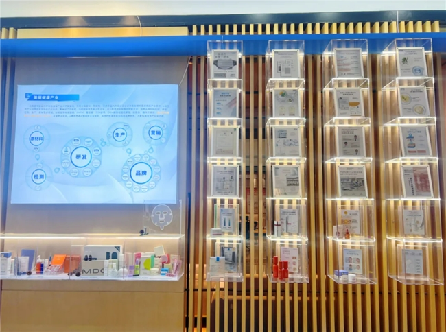 此外,园区自主打造“e通世界美丽健康产业”常设展厅,集中展示入驻企业创新成果与产业链生态特色,并结合产业沙龙、资源对接、赛事参与等多元化活动,促进美妆企业之间的协同创新与资源共享,构建“研发有支撑、创新有伙伴、成果能落地”的产业闭环。