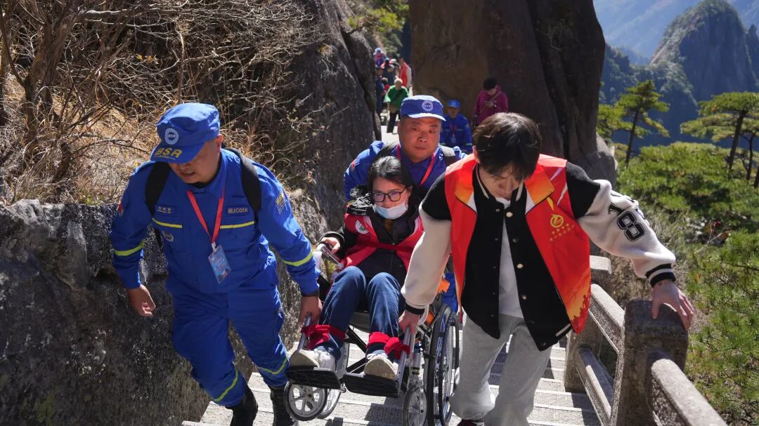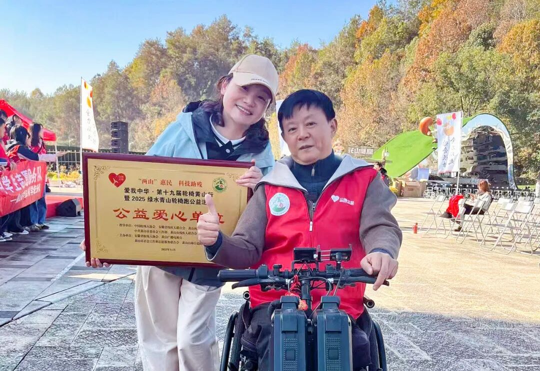 当阳光穿透黄山的云海,洒在花岗岩峰林之上,一群特殊的攀登者已在迎客松前留下了他们灿烂的笑容。2025年11月29日至30日,为期两天的“爱我中华·第十九届轮椅黄山行暨2025绿水青山轮椅跑”公益活动圆满举行。本届活动以“‘两山’惠民,科技助残”为主题,旨在让残疾人群体也能平等享受绿水青山的生态福祉,是科技与人文共助社会融合的生动实践。