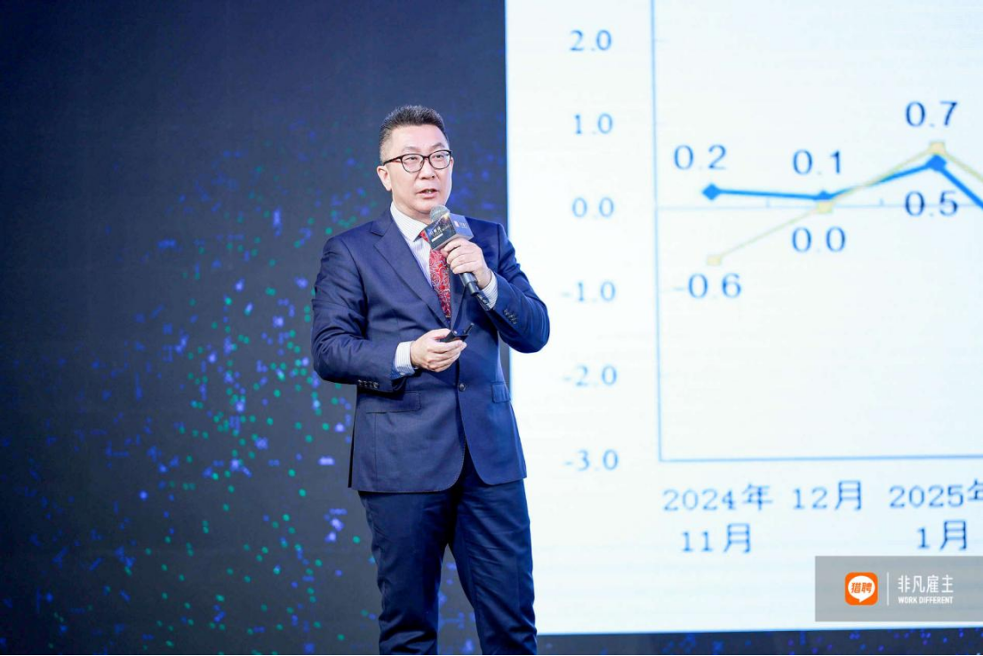 在《灵活用工:不确定时代下的确定性选择》圆桌论坛环节,首旅如家集团副总裁华驿品牌创始人CEO、万信品牌CEO王志伟,第一服务CEO刘培庆,巅峰减重轻减健康科技董事长耿文豪,瑞森生活服务CHO王晓刚,猎聘·薪班班创始人兼CEO祝挺围绕在成本上升与体验升级并行的时代背景下,企业如何通过灵活用工、组织重构与人机协同寻找确定性增长路径展开深入讨论。