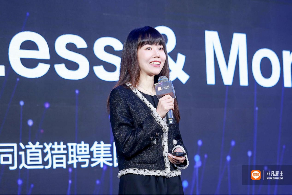 同道猎聘集团总裁宋月婷在《AI奇点,Less & More》主题演讲中指出,AI正把人才与组织推向一个“奇点时刻”:首先,在用工结构上呈现出明显的“Less Full-Time, More Part-Time”趋势。中国企业正加速采用零工与外包等灵活用工方式,以应对降本增效与业务弹性需求的双重挑战。
