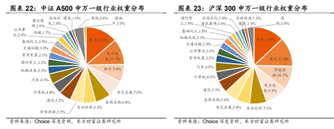 指数样本行业分布体现新质生产力特征。中证A500指数在电子、电力设备、医药、国防军工等新兴产业相较沪深300指数显著超配,金融、主要消费等传统行业权重占比显著降低,体现新质生产力特征,能够更集中地反映经济增长新动能的发展态势。