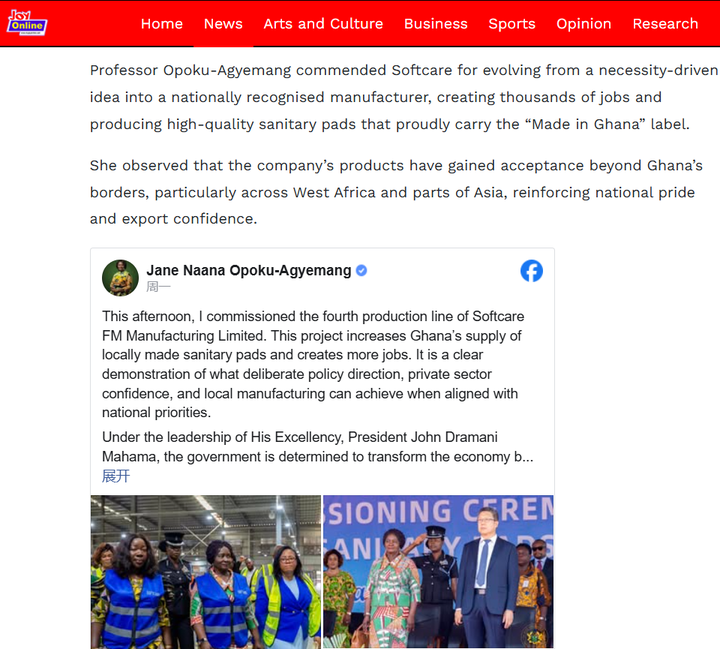 乐舒适经本次卫生巾新线投产也获得了加纳多家全国知名媒体的广泛报道:
