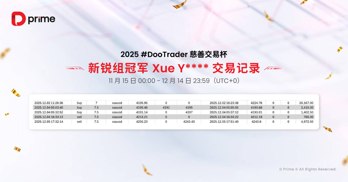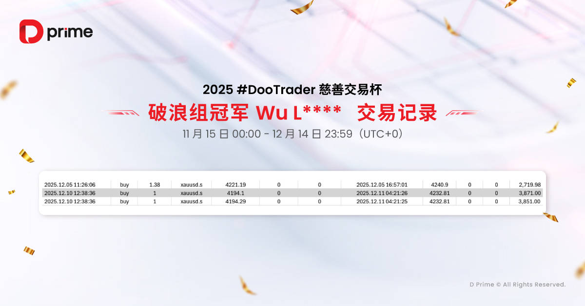 D Prime 2025 #DooTrader 慈善交易杯第五轮月赛已于 12 月 14 日 23:59(UTC+0)顺利收官,赛果榜单火热揭晓!第六轮月赛紧随于 2025 年 12 月 15 日 00:00(UTC+0)开赛 —— 欢迎各路交易高手立刻报名,争夺最后轮月赛破浪组 TOP5 晋级线下岛屿争霸赛名额!