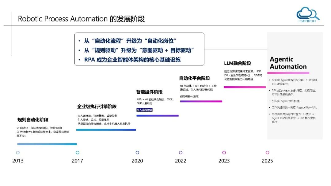 他强调,制造业数字化转型的本质诉求,是构建 “能自主完成任务的数字员工”。传统自动化虽能替代重复操作,却依赖固定规则与人工编排;而 Agentic Automation(智能体自动化) 通过赋予系统“思考—决策—执行”一体化能力,推动企业自动化从“流程脚本”向“目标驱动”演进。