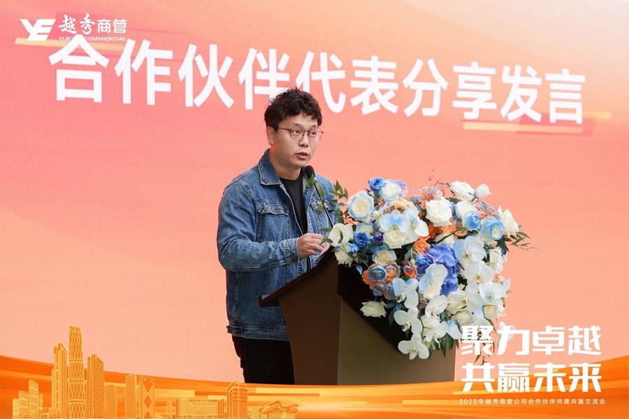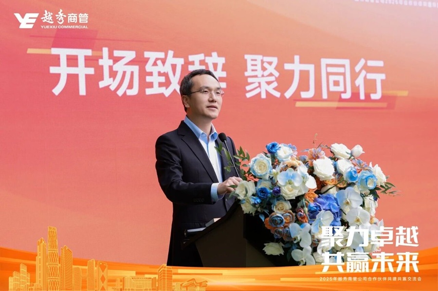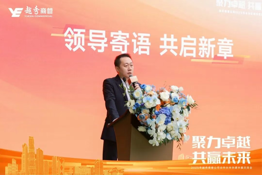 越秀商管副总裁周力大在开场致辞中对各位合作伙伴的到来表示热烈欢迎和衷心感谢。他强调相互选择、彼此信任、共同耕耘的重要性,并指出此次交流会正是为了重申“携手共进、相伴同行”的承诺。随后,周力大介绍了越秀商管的业务布局与规模,并全面回顾了2025年取得的经营成绩。他特别列举了多个与合作伙伴并肩奋斗的感人案例,对大家的专业付出给予高度肯定。